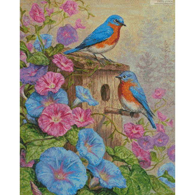Recommended fabric: 18 count or higher. You may stitch it on any fabric you’re comfortable with, but you will get a better effect at closer range when stitching on a higher count fabric.