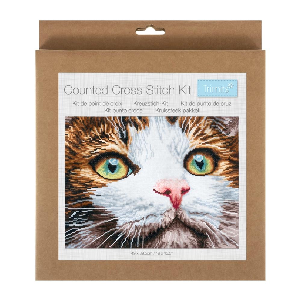 - Kit includes: white, cotton, 11 count, aida fabric; 6 strand polyester embroidery thread; needle; colour coded design and instructions in 6 languages (ENG,FR,DE,ES,IT,NL).