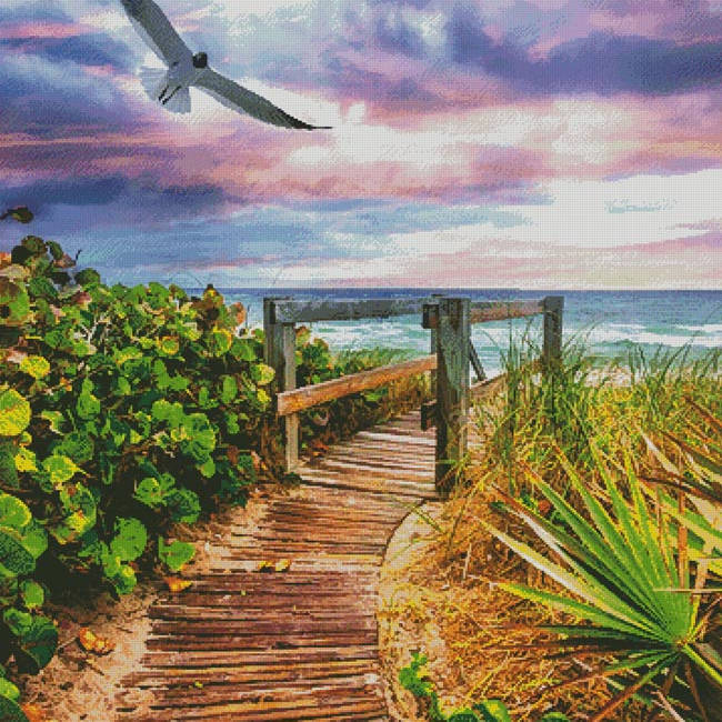 Recommended fabric: 18 count or higher. You may stitch it on any fabric you’re comfortable with, but you will get a better effect at closer range when stitching on a higher count fabric.