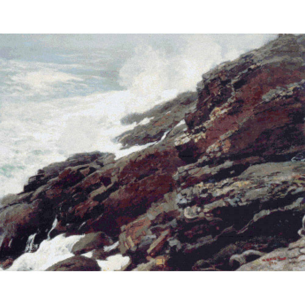 Broken basalt cliffs pounded by a cold New England sea.ย  This pattern is solidly stitched. Any color fabric may be used.