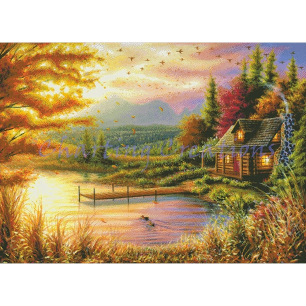 Recommended fabric: 18 count or higher. You may stitch it on any fabric you’re comfortable with, but you will get a better effect at closer range when stitching on a higher count fabric.