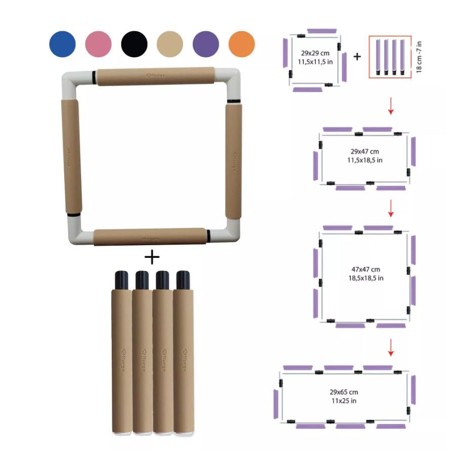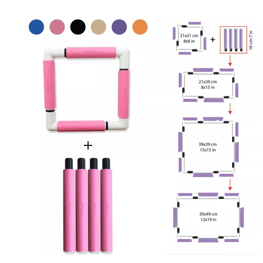 Key Features:ย Genuine NURGE Quality * Strong & Sturdy * Lightweight * Easy โSnapโ together Assembly * Keeps Fabric Tight and Even * Simple Twist Adjustment * Optimises working space * Cheerful Colour Options