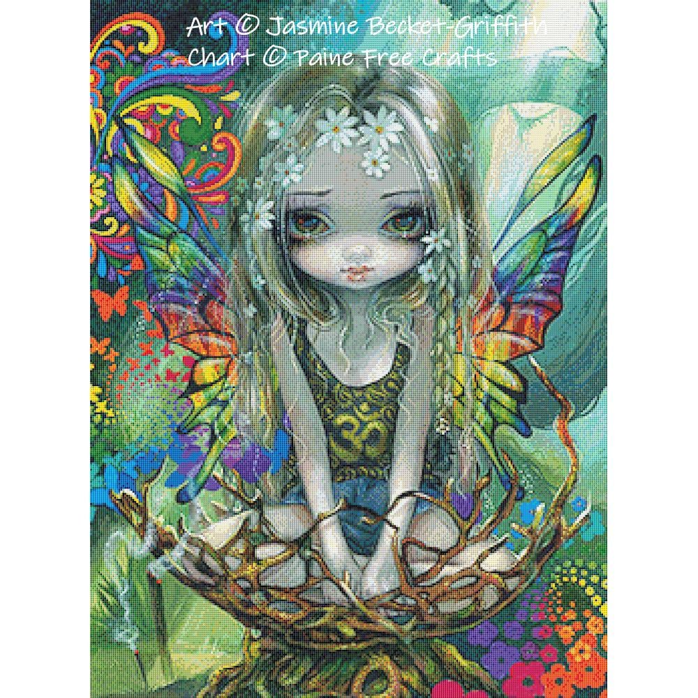 Gorgeous full coverage cross stitch design from the art of Jasmine Becket-Griffith, available as PDF, printed chart, or full kit.