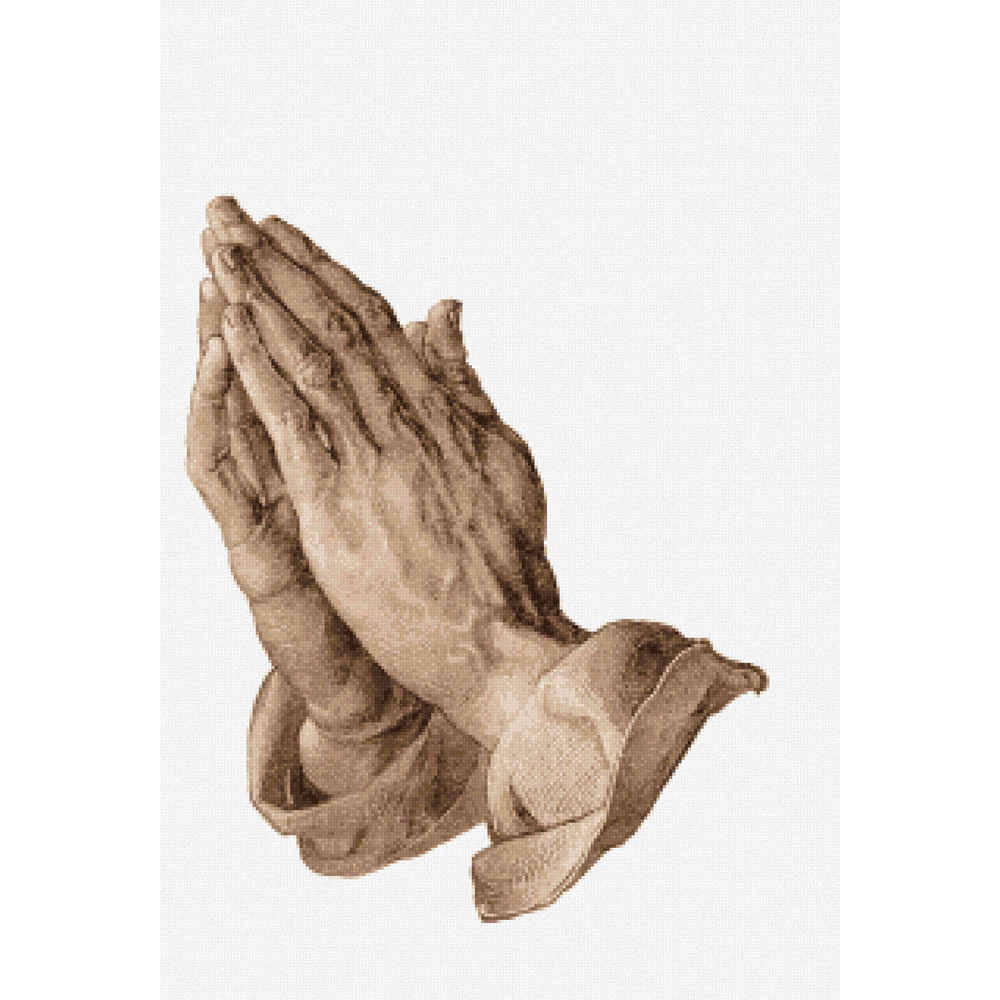 Albrecht Durer’s beloved study of two hands pressed together in prayer.  Our version is sepia-toned, and all the details of bones and veins showing through the skin are reproduced.  The background is not stitched, and the pattern is designed for white fabric.  (1508)
