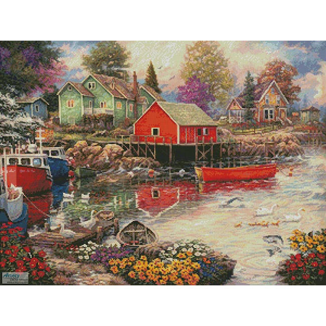 Recommended fabric: 18 count or higher. You may stitch it on any fabric you’re comfortable with, but you will get a better effect at closer range when stitching on a higher count fabric.