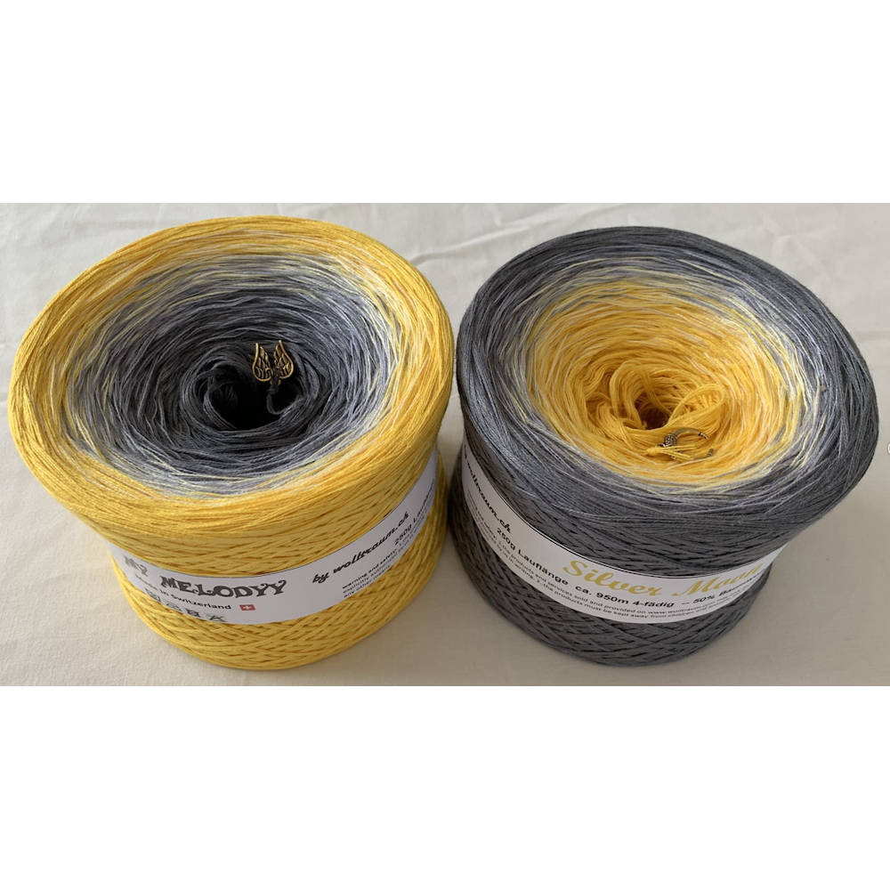 This gorgeous colour is called “Silver Moon”. You will receive ONE yarn cake of your choice of centre colour. We show both options on this listing, but the product is one single cake of yarn.