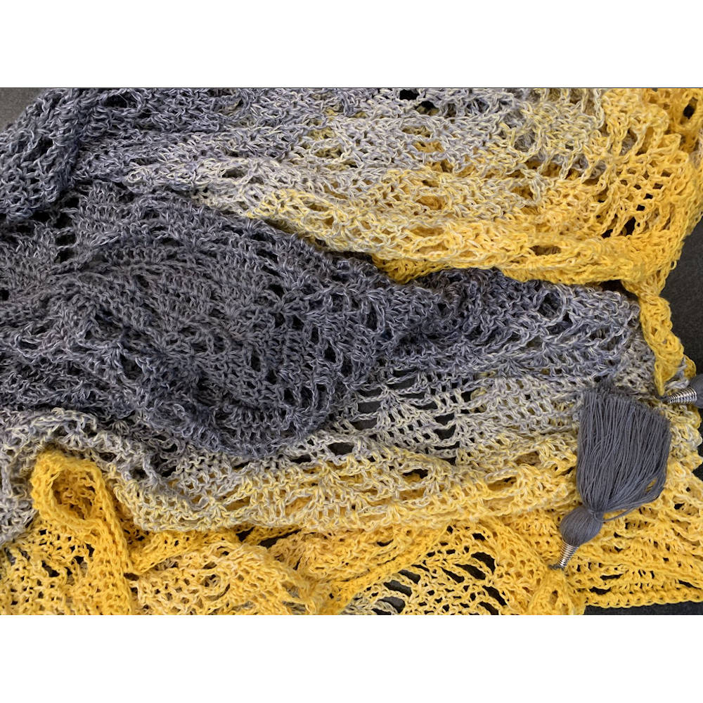 These beautiful MyMelodyy “Yarncakes” from Wolltraum (based in Switzerland) consist of a very smooth 50% cotton, 50% acrylic mix of fibres. Each cake has an amazing gradient of colour along the full length. This gradient is created by changing *one* strand at a time (tiny knots that you can barely see when knitting or crocheting with the yarn) and makes a stunning effect in anything you make with it.