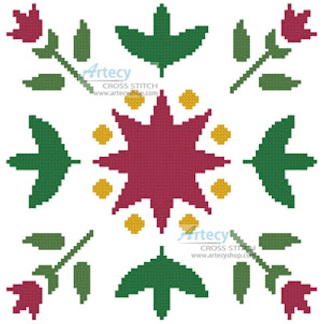 Recommended fabric: 18 count or higher. You may stitch it on any fabric you’re comfortable with, but you will get a better effect at closer range when stitching on a higher count fabric.