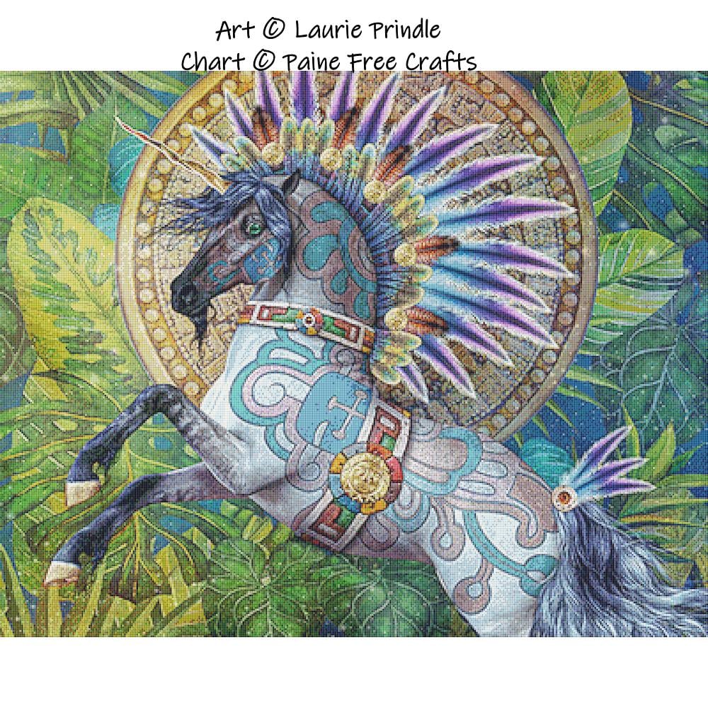 Full coverage cross stitch chart design based on the gorgeous art of Laurie Prindle