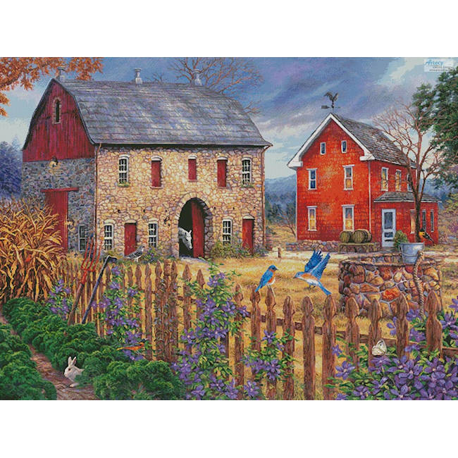Recommended fabric: 18 count or higher. You may stitch it on any fabric you’re comfortable with, but you will get a better effect at closer range when stitching on a higher count fabric.