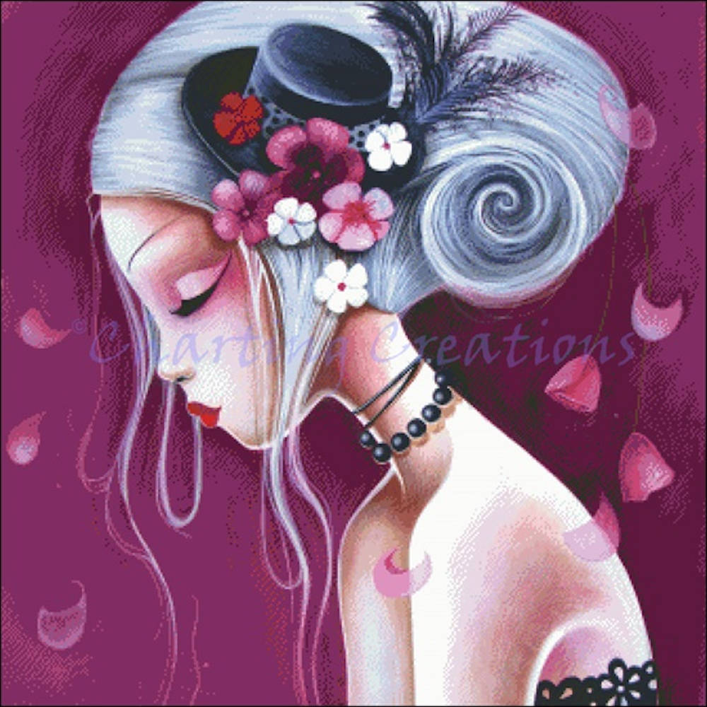 Recommended fabric: 18 count or higher. You may stitch it on any fabric you’re comfortable with, but you will get a better effect at closer range when stitching on a higher count fabric.