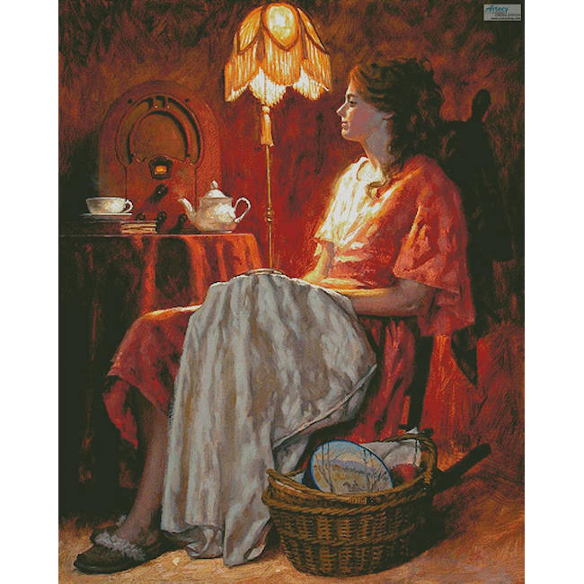 Recommended fabric: 18 count or higher. You may stitch it on any fabric you’re comfortable with, but you will get a better effect at closer range when stitching on a higher count fabric.