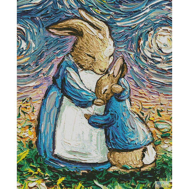 Recommended fabric: 18 count or higher. You may stitch it on any fabric you’re comfortable with, but you will get a better effect at closer range when stitching on a higher count fabric.