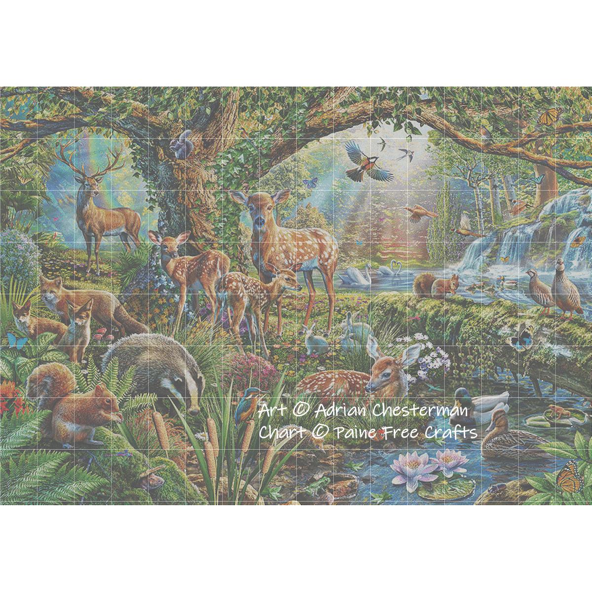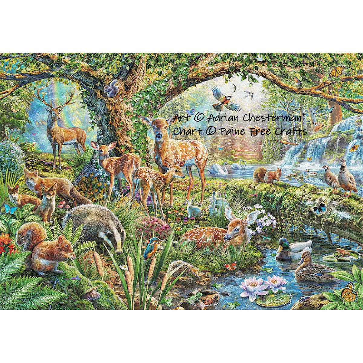 A supersize version of Woodland Creatures – full coverage cross stitch design from art by Adrian Chesterman.