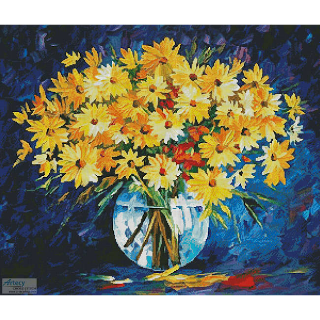 Recommended fabric: 18 count or higher. You may stitch it on any fabric you’re comfortable with, but you will get a better effect at closer range when stitching on a higher count fabric.